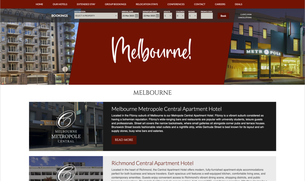 - Melbourne Metropole Central Hotel, 44 Brunswick Street Fitzroy (2.3 km from conference venue)
