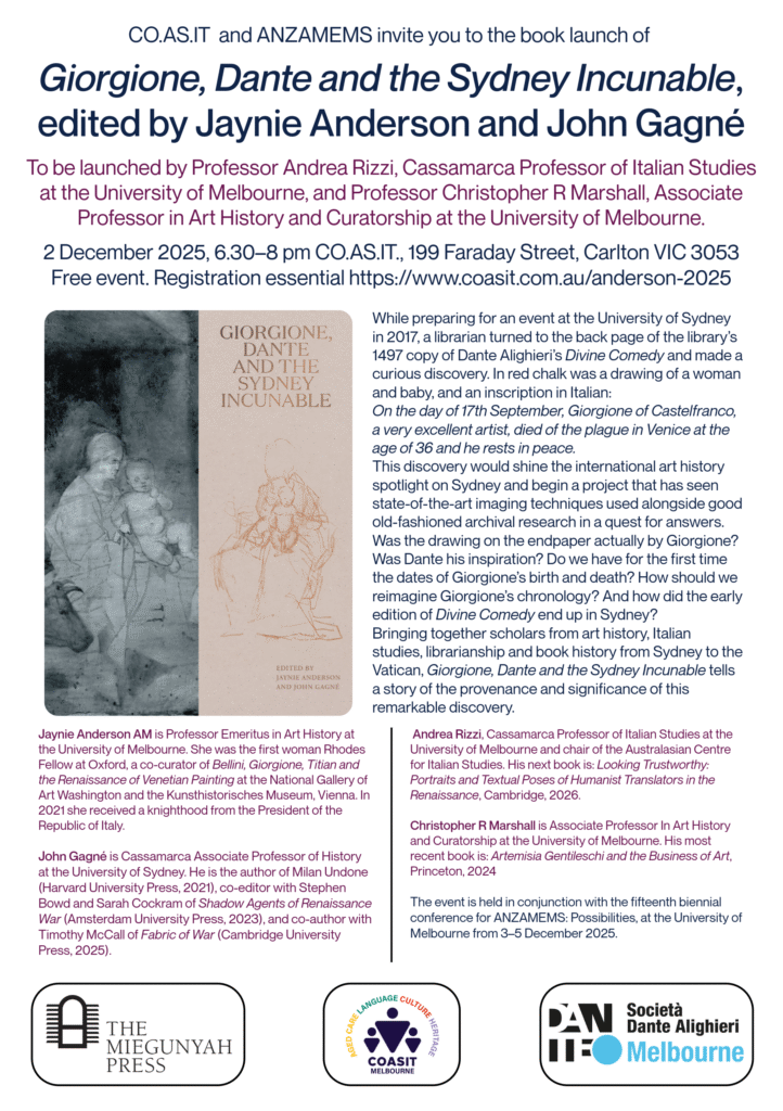 Book Launch: Giorgione, Dante and the Sydney Incunable, edited by Jaynie Anderson and John Gagné